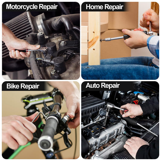 Egofine 46 Pieces 1/4 inch Drive Socket Ratchet Wrench Set, with Bit Socket Set Metric and Extension Bar for Auto Repairing and Household, with Storage Case