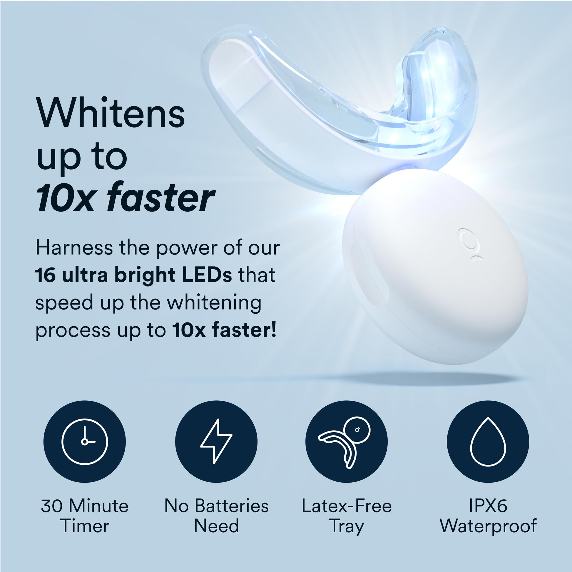 - [WHITENS FASTER] The LED light activates the molecules in the bleaching gel to whiten teeth faster and remove years of stains in just 30 minutes. [WHITENS FASTER] The LED light activates the molecules in the bleaching gel to whiten teeth faster and remove years of stains in just 30 minutes.