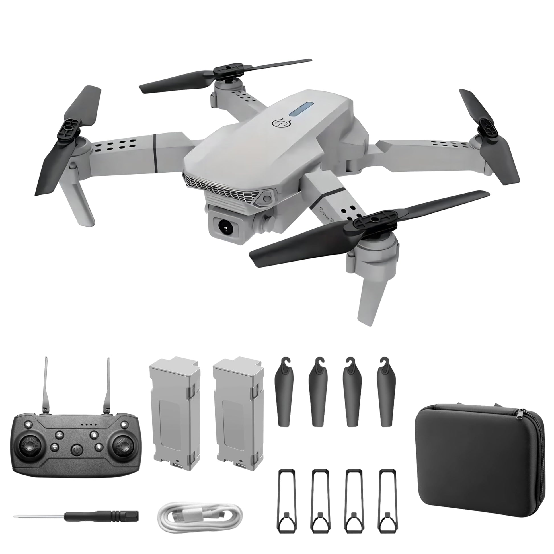 E88 Drone With Dual Camera, Mobile App Control, Indoor Flying Toy RC Plane With Video Function - Ideal Gift For Beginners, Christmas Halloween Thanksgiving Birthday Gift (Gray+Dual Batteries)