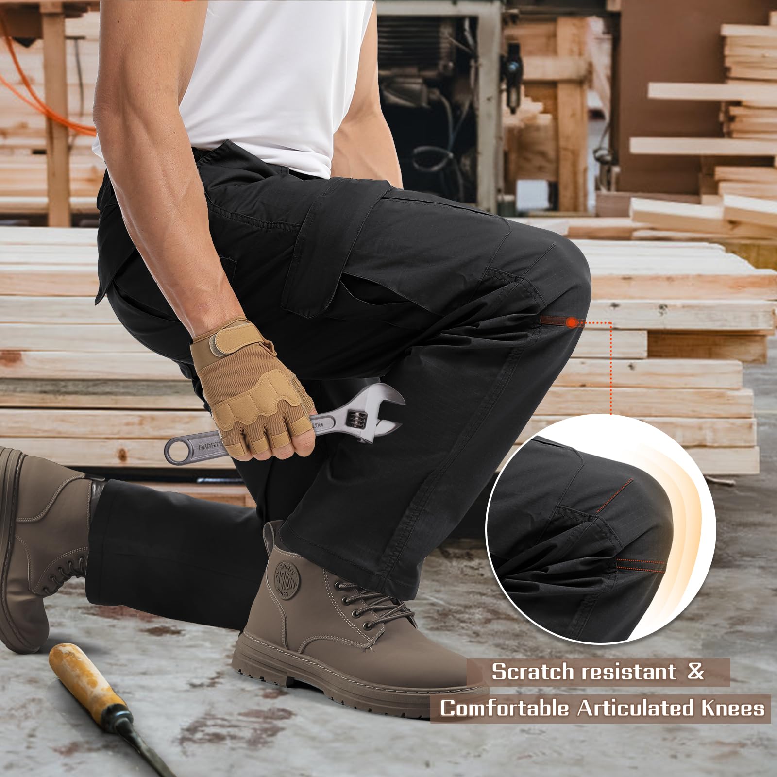 IGOLUMON Men's StretchTactical Pants, Breathable Ripstop Cargo Pants, Outdoor Lightweight EDC Work Hiking Pants, Durable Casual Trousers Black